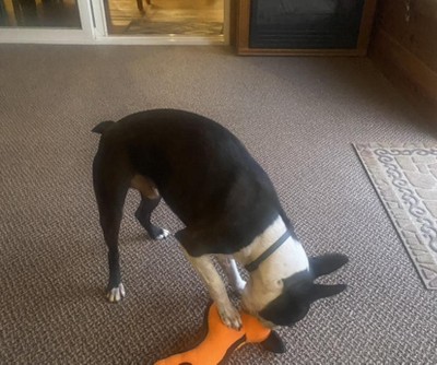 My Boston Terrier loves to throw the fox toy up on the air catch it!