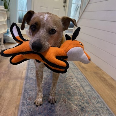 This little fox is cute and super tough. My pups are hard on toys and love to play tug with everything. This toy has been tugged, chewed and dunked in the pool and still good as new.