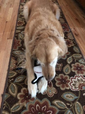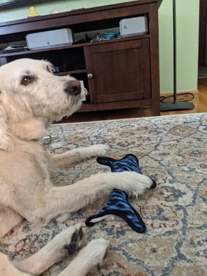 Hands down the BEST dog toy! My golden retriever is obsessed with this toy. She has a basket of toys and this is her “go to” every time. It’s super tough and durable. She always finds a way to rip a toy somehow and this one hasn’t been destroyed at all. It has squeaky that she loves to press. It’s so adorable how much she loves this toy. What an amazing brand. I can’t wait to buy more for her!