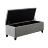 The Madison Park Shandra Tufted Top Storage Bench offers a sophisticated storage option that elevates your home decor. This accent bench come fully upholstered and features a button tufted top that adds a refined touch to the luxurious design. The solid wood legs showcase a dark wood finish that beautifully complements the upholstery, for an elegant transitional look. With ample storage space for blankets or other home essentials, this upholstered storage bench adds functionality and style to your bedroom or living room. Leg assembly is required and tools are included.