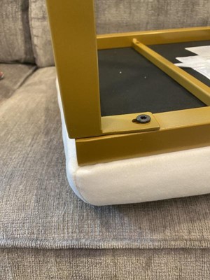 Don't waste your money. It looks cute, but it's impossible to put together. While the base looks like one solid piece, it isn't. It's four legs and an "X" that you have to attach to the bottom of the legs. It doesn't fit. I broke a sweat trying to get the screws and holes to line up. They don't after you attach one leg. Plus, all the shoving and pulling has scratched/torn the gold paint off part of the legs. This ottoman is garbage.