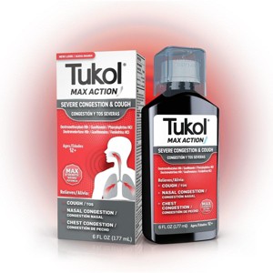 - Tukol Max Action Severe Cough & Congestion Liquid, 6 Oz provides strong relief for coughs and chest congestion.