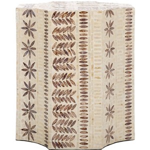 Uplift any corner with the eye catching beauty and charm of our Tuley accent table. A rich artisanal appeal and sculptural silhouette make our accent table a true stunner. A capiz inlay creates a beautiful harmony of exotic patterns and motifs to accentuate the sleek curves of our table. It is finished off in an iridescent and translucent white and gold finish to lend refined glamour to any corner. A perfect accent for an upscale space or eclectic environment, our end table remains the perfect companion to your sofa, bed, or chaise.