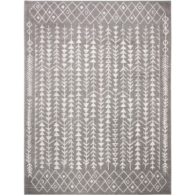 Elevate your living space with this exquisite large rectangle area rug, measuring 9 feet by 12 feet. Crafted with a unique blend of 60 percent polypropylene and 40 percent jute, this rug combines durability with artistic charm. The dark grey and ivory tones provide a versatile palette, enhancing any decor with ease. Its power loomed construction from Turkey ensures a precise and intricate finish. With a height of 3/8 inch, it offers a comfortable surface underfoot. Embrace the bohemian flair and let this rug become the centerpiece of your room, adding both style and comfort.