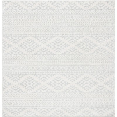 Elevate your living space with this elegant area rug, measuring 8 feet by 8 feet. Featuring a soothing color palette of ivory and light grey, this square masterpiece seamlessly blends into any decor scheme. Crafted using advanced power loomed techniques, it combines durability with style. The rug's composition of 60 percent polypropylene and 40 percent jute offers a beautiful balance of comfort and texture. Originating from Turkey, this piece embraces a bohemian style, adding a touch of artistic flair to your home. With a height of 3/8 inch, it offers a subtle yet distinct presence on your floor. Whether placed in your living room or bedroom, this rug is a versatile choice for a modern and chic aesthetic.