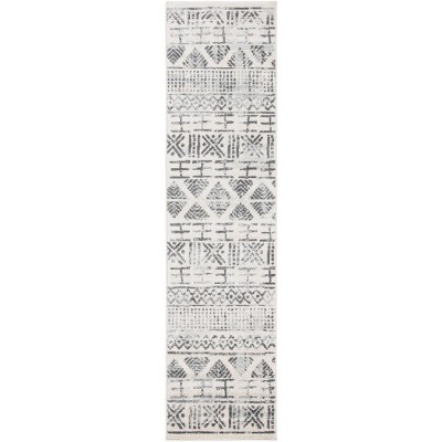 Elevate your home decor with this contemporary area rug, crafted in Turkey and designed to enhance any space. The 2-foot by 9-foot runner in ivory and black offers a sleek and modern touch, fitting seamlessly into hallways, entryways, or any elongated space. Manufactured using power loomed techniques, it combines 60 percent polypropylene with 40 percent jute for a blend of durability and visual appeal. With a comfortable height of three-eighths of an inch, this rug provides a smooth underfoot experience without compromising on practicality. The minimalist design and neutral tones make it a versatile addition that complements a wide range of interiors.