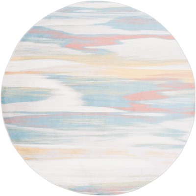Tulum TUL662 Power Loomed Indoor Area Rug - Ivory Grey/Blue Rust - 6'-7" Round - Safavieh
