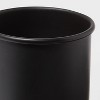 The Black Metal Tumbler from Threshold™ makes a functional and stylish addition to your bathroom. Made of steel and featuring a clean black finish and a tall 4.72-inch height, it blends easily with your existing decor while providing an attractive, industrial accent piece. The tumbler provides you with plenty of space for storing your bathroom essentials, making it easy to keep the countertop clean, organized and clutter-free, and it can be spot-cleaned or wiped down for easy upkeep.