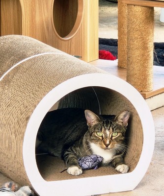 - Tunnel-shaped cat scratcher helps your feline friend satisfy their scratching urges
