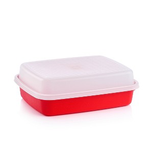 Tupperware Season Serve Marinating Food Storage Container: Dishwasher-Safe, 12.5 Volume, Clear & Red
