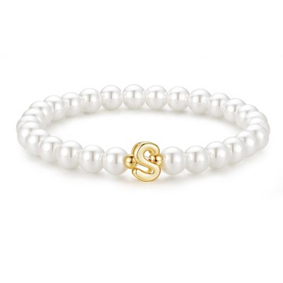 Turandoss 6PCS Gold Initial Bracelet for Women Girls - Stacked Beaded Bracelets for Kids, Layered Letter Pearl Bracelet Set, Christmas Gifts, 6In, S