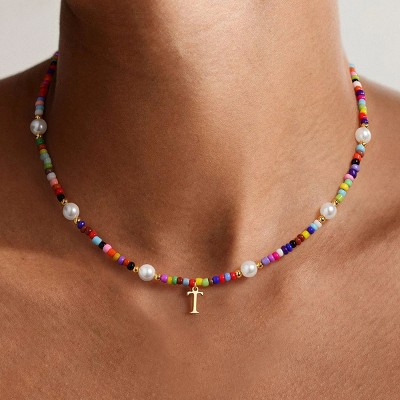 - SUMMER CHARM NECKLACE: Express your unique style with this trendy beaded choker necklace! It features a 18K gold-plated initial pendant surrounded by colorful beads and cultured pearls. Perfect for layering or wearing solo, ideal for summer outfits, "boho" looks, or nostalgic Y2K vibes.