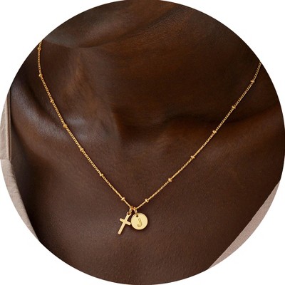 - DAINTY CROSS INITIAL DESIGN: The classic golden cross symbol is combined with an exquisite initial disc to create highly personalized and elegant works. This timeless women's cross necklace combines faith and personality, symbolizing 'may you be protected by faith and surrounded by love', making it the perfect choice for primitive cross necklaces or precious souvenirs.