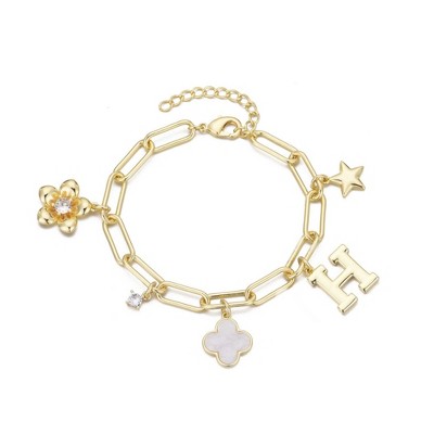 Turandoss Gold Initial Charm Bracelets for Women Girls, Gold Jewelry for Her, Birthday Valentine's Day Gifts for Women, Trendy Stuff, 6+2Inches, H