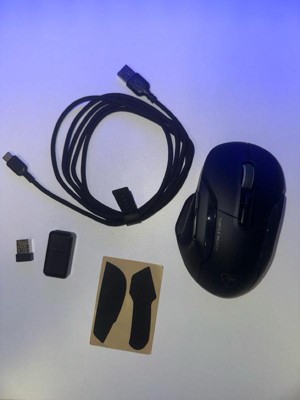 [This review was collected as part of a promotion.] This mouse hits all of the right notes for me in a wireless gaming mouse. Upon unboxing, I noticed a premium ultra-protective foam cushioning that cradles the mouse perfectly. Holding it for the first time, I was surprised by how well it fit the shape of my hand and I was very impressed that it came with two stick-on textured attachments to cover the parts where the fingers grip the sides for a bit of extra control. The material feels very solid and well-put-together. The lights are bright, but not overwhelming or annoying and they shut off after the mouse has been inactive for a bit, contributing to the impressive battery life. When using the mouse, its responsiveness and sensitivity is top notch, allowing you to control the sensitivity with and push of a button that related to colors on the scroll wheel. There is not a hint of lag when using it wirelessly and I thought it was very nice that they offered both 2.4 ghz wireless AND Bluetooth with a dongle. It truly is allowing you to customize your experience, not just with the many programmable buttons but the method of connectivity itself. The only thing I find myself struggling to get used to is the muted click that the mouse buttons make. I come from a mouse that has a very tactile and obvious click and in comparison, this click is a bit more subtle, leading me to second guess if the click had registered properly (it always did). This is likely a me problem, but it is something to be aware of - the mouse clicks are not the most tactile. Overall, I am extremely impressed with this and I believe that I will be making it my everyday mouse from now on!