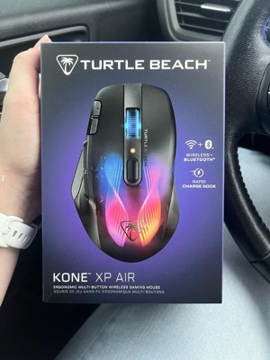 The Turtle Beach Kone XP Air Wireless Customizable Gaming Mouse with Charging Dock combines the beloved Kone shape with lag-free 2.4GHz Wireless + Bluetooth® connectivity. Boasting 29 programmable inputs, the Kone XP Air delivers rich customization options in a stunning translucent shell filled with LEDs for immersive 3D lighting. An Owl-Eye™ 19K DPI optical sensor combines with TITAN Optical Switches to provide a responsive and ultra-fast experience for a competitive edge game after game. The stylish charging dock provides five hours of play time with just 10 minutes of charging and 4 RGB lighting zones.