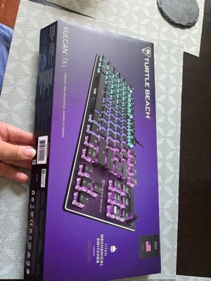 The Turtle Beach® Vulcan TKL is a tenkeyless variant of the award-winning Vulcan keyboard family. This smaller form factor means gamers have room for a larger pad and can use a bigger range of mouse movements, ultimately giving them greater accuracy. The linear TITAN Switch Mechanical delivers the industry’s best in speed and responsiveness. The switch adds to a comprehensive feature set that gamers know and love. The low-profile design is engineered for comfort and to reduce fatigue. Impressive durability and build quality thanks to its reinforcing black anodized aluminum top plate, switches rated to 50 million keystrokes, dedicated mixer-style audio controls and per-key AIMO™ RGB lighting.