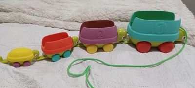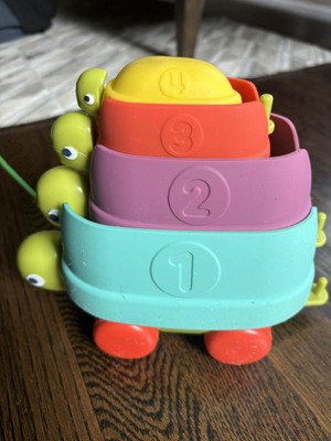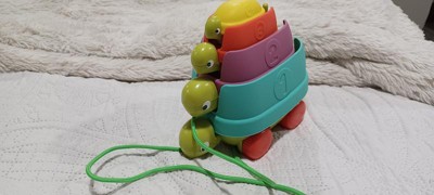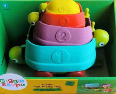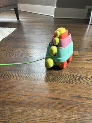 This turtle pull along toy is great. You can pull them stacked or pull one behind the other kinda like those toy trains for toddlers back in the day. It is fun vibrant colors made of plastic and rubber.