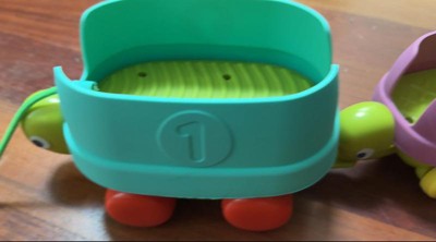1 year old really likes her turtle train and enjoys playing with the wheels 😆 keeps her busy. The baby turtle really has her full attention ❤️
