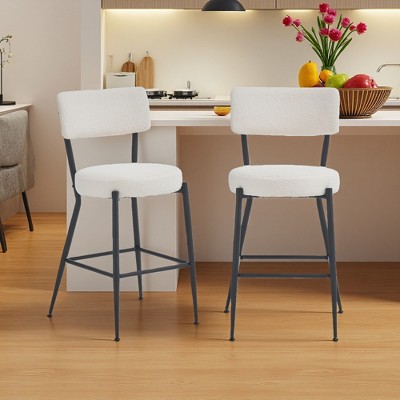 TUYOHW 26"H Swivel Bar Stools Set of 2,Plush Fabric Seat with Metal Frame,Modern Counter Height Bar Stools for Kitchen Island & Home Bar,Beige