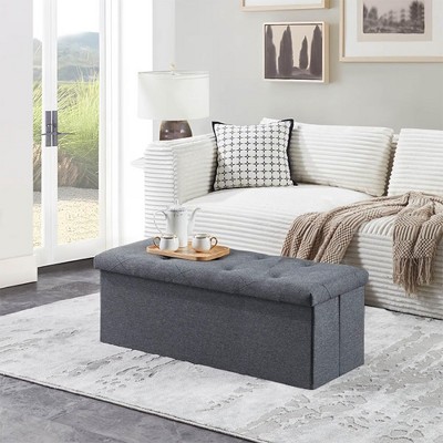 TUYOHW 43" Black Foldable Storage Ottoman Bench,Foot Rest Stool with Thicker Foam Padded Seat,Faux Leather Storage Chest for Living Room,Bedroom