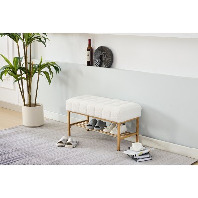 TUYOHW 43" Versatile End-of-Bed Ottoman Bench with Storage,Soft Linen Entryway Bench,Chic Bed Ottoman with Rubberwood Legs,250lbs Capacity,White