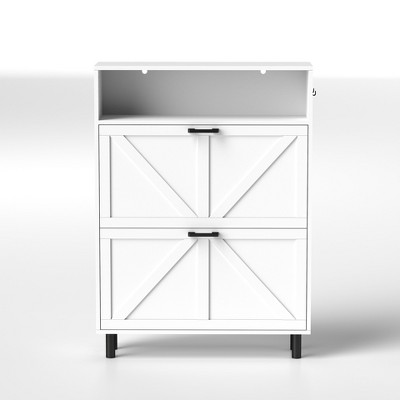 TUYOHW 5-Tier Wooden Shoe Storage Cabinet with Adjustable Shelves, Airy Louvered Door Shoe Rack, Practical Shoe Organizer for Entryway, Walnut