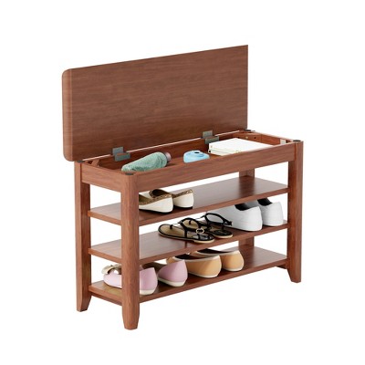 TUYOHW 550lb Load-Bearing Solid Wood Shoe Bench, Heavy-Duty Front Door Shoe Rack, Sturdy Shoe Organizer for Entryway Corridor Aisle, 31.5" L