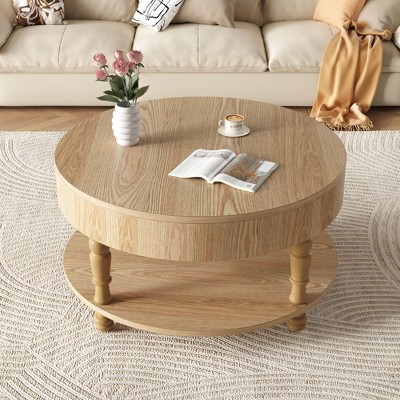 TUYOHW Boho Style Coffee Table with Sliding Doors,Modern Center Table for Living Room,Storage Accent Table with Wooden Legs,220lbs Capacity
