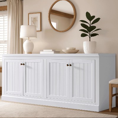 TUYOHW Acrylic-Door Sideboard Cabinet, Pantry Cabinet Storage Cabinet with Detachable Shelves, Freestanding Storage Cupboard Console Table, Black