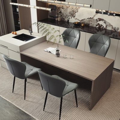 TUYOHW Modern PU Leather Tufted Dining Chairs Set of 4,Accent Dining Room Chairs with Black Sanded Metal Legs,Gray