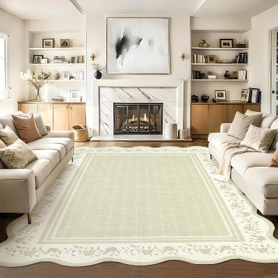 TUYOHW Nordic Style 9x12FT Carpet,Anti-Stain Polyester Silent Rug for Large Living Room & Bedroom,Easy to Clean,Beige