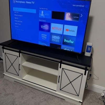 Sliding barn doors: Living room tv stand features a qualified while vintage farmhouse sliding barn door, super smooth and convenient to use, meanwhile, chic and retro to serve as a tasteful addition to your living room
