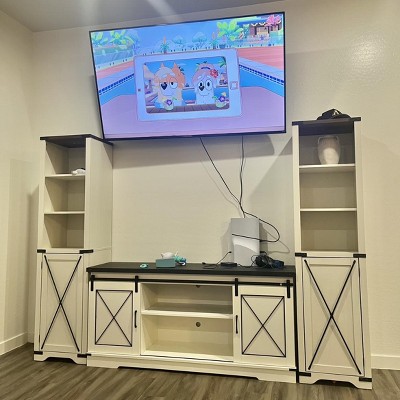 Sliding barn doors: Living room tv stand features a qualified while vintage farmhouse sliding barn door, super smooth and convenient to use, meanwhile, chic and retro to serve as a tasteful addition to your living room