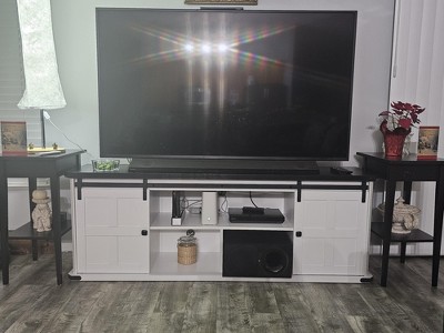 This TV Stand is designed to perfectly accommodate 80, 75, and 70 inch TVs, making it an ideal centerpiece for your living room entertainment setup. Crafted from high-quality MDF, this modern TV cabinet combines durability with style, featuring sliding barn doors that add a rustic charm while providing easy access to your media devices and storage compartments. The compact yet spacious design offers ample storage space for your media consoles, gaming systems, DVDs, and other accessories, helping you keep your living area neat and organized. Equipped with built-in power outlets, this entertainment center allows you to conveniently plug in your TV, gaming consoles, and other electronic devices without the hassle of tangled cords. The sliding door mechanism ensures smooth operation and saves space, making it perfect for rooms of any size. Its sleek wooden finish complements various interior styles, from contemporary to farmhouse, enhancing the overall aesthetic of your home. - Fits 80/75/70 inch TVs, providing a sturdy and stylish base for large screens - Made from durable MDF with a modern wooden finish for long-lasting use - Sliding barn doors offer easy access and add a unique rustic touch - Built-in power outlets for convenient device charging and cable management - Compact design with ample storage space for media consoles, DVDs, and accessories - Space-saving sliding door mechanism ideal for small to medium living rooms - Versatile media console cabinet suitable for various home entertainment setups Upgrade your home entertainment experience with this functional and stylish TV stand that combines modern design with practical storage solutions.