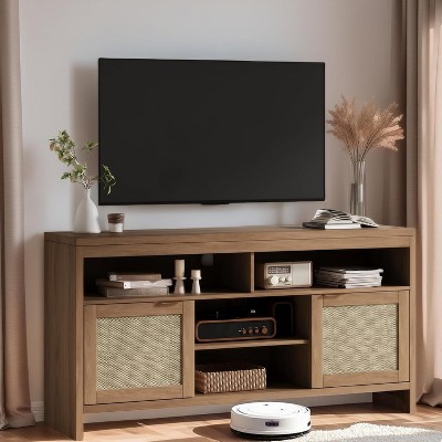 Natural Farmhouse Charm with Rattan Doors: This TV stand features two beautifully woven rattan doors, bringing a touch of nature and warmth to your living room decor. The farmhouse-inspired design easily complements a variety of interior styles