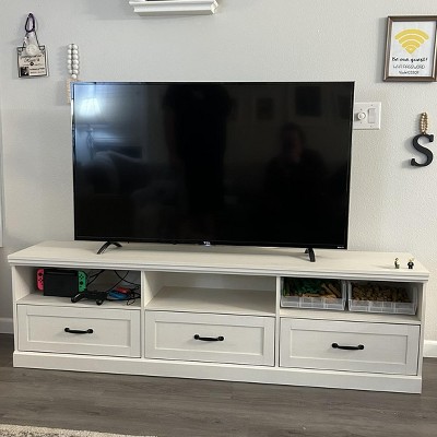 70in TV Stand for TVs up to 75", Mid Century Modern Entertainment Center with Storage Drawer and Open Shelves, TV Console Media Cabinet for Living Room, Bedroom.TV Stand for TVs Up to 75", 70in Entertainment Center with Storage Drawer and Open Shelves, Mid Century Modern Media Cabinet for Living Room, White.TV Stand for TVs Up to 75", 70in Entertainment Center with Storage Drawer and Open Shelves, Mid Century Modern Media Cabinet for Living Room, White