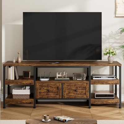 Modern industrial aesthetics: this simple brown TV cabinet combines urban elegance with practical design, and adopts wood grain medium density fiberboard and black powder coated metal frame. Its modern industrial TV cabinet design enhances your living room, bedroom or office with a bold and timeless style.