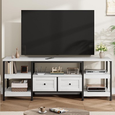 Multifunctional storage and placement: two spacious fabric drawers and adjustable open shelves maximize storage space, which is very suitable for game machines, DVDs or other home decorations. This neutral tone media console perfectly blends with farmhouse, modern or industrial decoration style, and easily blends into your living room, bedroom or home office.