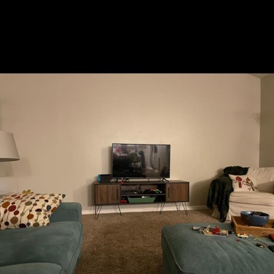 Perfect for my new 65" TV. Plenty of shelving and storage with doors. The retro/mid-century modern look is exactly what I wanted.