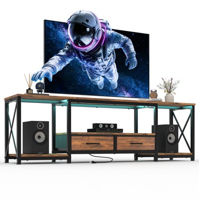 Introducing the perfect TV Stand designed to accommodate 75, 70, and 65-inch TVs, combining style, functionality, and convenience in one rustic brown entertainment center. This TV console table features durable fabric drawers that offer ample storage space for your media accessories, remote controls, and other essentials, keeping your living room, bedroom, or office neat and organized. The open storage shelves provide easy access to your gaming consoles, cable boxes, and decorative items, enhancing your entertainment setup with a clean and modern look.