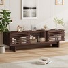 You need a TV stand that looks great, holds your media essentials, and fits your space. This 55 inch farmhouse TV stand delivers all three. The warm walnut finish and louvered doors add mid-century charm, while the spacious interior keeps gaming consoles, streaming devices, and remotes organized. Sturdy MDF construction for daily use. Easy assembly – a stylish upgrade for any living room.