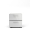 Sleek and slender bedside storage. Austin 2 Drawer Nightstand keeps bedside necessities within reach. Helping to orchestrate a clutter free room, this nightstand takes up minimal space and meshes with a variety of decor styles. Streamlined hardware and round feet give the Austin line its simple chic feel. Standing strong with metal drawer liners and an easy to clean foil surface the Austin nightstand will be a productive and durable piece in your collection. Pair this Austin 2 Drawer Nightstand with other items from the Austin collection to complete the look.