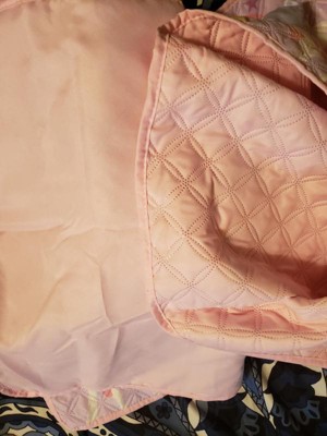 [This review was collected as part of a promotion.] First off, let me say this quilt is absolutely beautiful! My daughter is over the moon with it. It's very light, and stitched together very strongly. The pillow case is very easy to get over the pillow, and the decorative pillow is so very soft and plush. The color of the quilt is almost like pastel colors, very light and calming color choices with a beautiful print to follow!