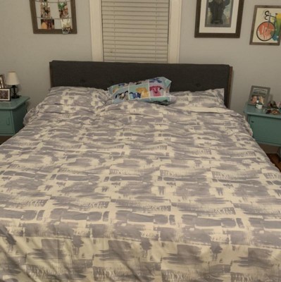 Style your bedroom as neutral territory with this modern brushstroke geometric in a minimal palette of silvery gray and white. Artistic and urbane, this bed set will provide a fresh update with a contemporary attitude for any room, whether in the city or the country. Twin duvet cover set includes one duvet cover (86"x68") and one sham (21"x27"). Full/queen duvet cover set includes one duvet cover (88"x88") and two shams (21"x27"). King duvet cover set includes one duvet cover (88"x104") and two shams (21"x37"). Duvet features 4-inner corner ties, used to keep the duvet insert in place during use. Duvet insert sold separately. Machine washable for easy care.