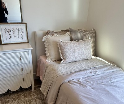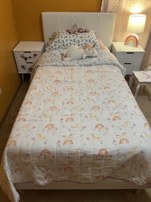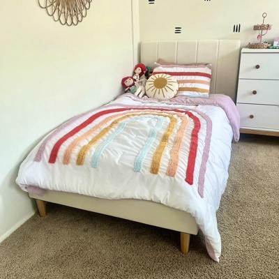 Twin Bed Cream - Room Essentials™: Upholstered Headboard, Plywood Frame, No Box Spring Needed