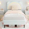 - Adorable Style: Brighten up any kids' room with this twin bed frame featuring a unique bear-ear headboard and cheerful colors. Perfect as a princess bed frame or cute toddler bed frame for playful nurseries and bedrooms