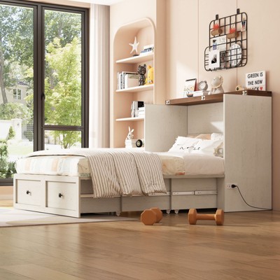 Twin Daybed with Trundle, Metal Daybed with Trundle Bed Twin, Sofa Bed with Metal Slats Support, Industrial Sofa Bed, No Box Spring Needed White