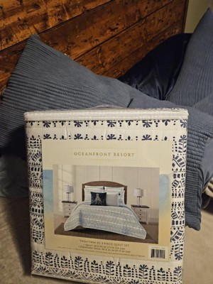The Reef Blue Quilt Set by Oceanfront Resort adds a modern touch to your bedroom thanks to a geometric block print in a stripe motif. From a master bedroom to a guest suite, this quilt set adds a sense of tranquility thanks to its colors of white and blue. The set includes matching pillow shams and machine-washable care.