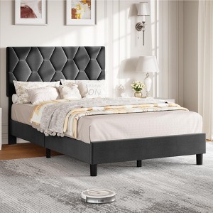 - Modern Elegance: : Featuring a diamond block design on the headboard, the upholstered bed frame combines contemporary style with plush comfort. And wide headboard not only adds comfort but also completes your contemporary aesthetic. Its foam-padded upholstery offers supportive comfort while relaxing